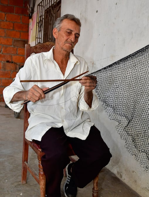 El sol está a punto de ocultarse y Ulises Lecaro Alvarado, de 65 años, con las manos arrugadas sigue tejiendo la atarraya, una red que lleva plomo en sus bordes y sirve para la pesca de peces medianos y pequeños. Sus ojos de color café claro ven sin lentes y sin dificultad, así, sin complicaciones sabe cómo mover la ojeta y unir la piola desde los 12 años.