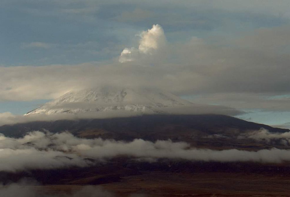 Una leve emisión de vapor y gas se observó la mañana de este sábado, 29 de octubre, en el volcán Cotopaxi.